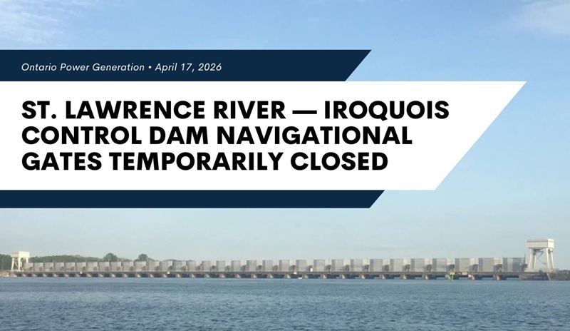 St. Lawrence River – Iroquois Control Dam Navigational Gates Temporarily Closed