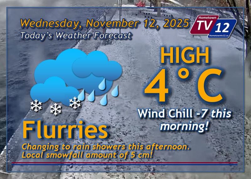 Brockville — Today, flurries changing to rain showers this afternoon. Local snowfall amount is 5...... Read more.
