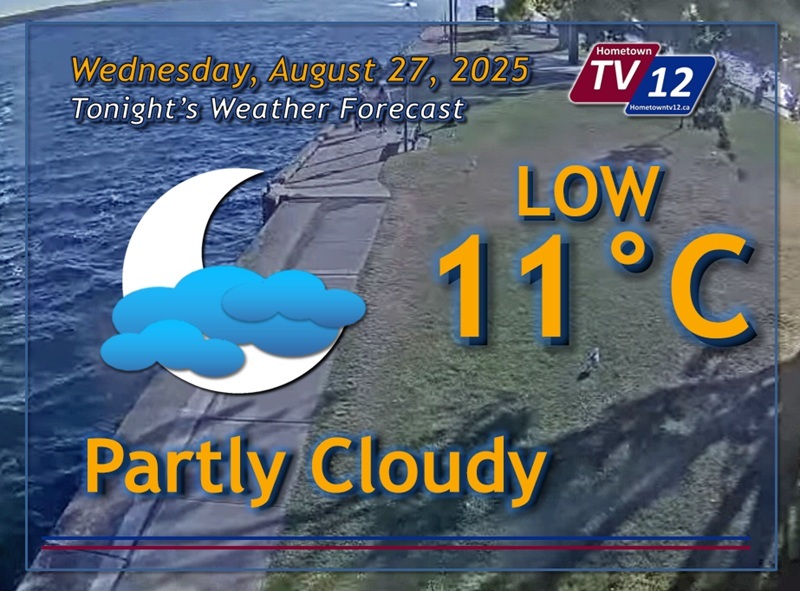 Brockville – Tonight, partly cloudy. Wind southwest 20 km/h. Low 11°C. Thursday will be mainly...... Read more.