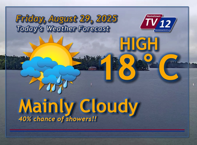 Brockville — Today, mainly cloudy. Showers are beginning this morning. Risk of a thunderstorm this...... Read more.