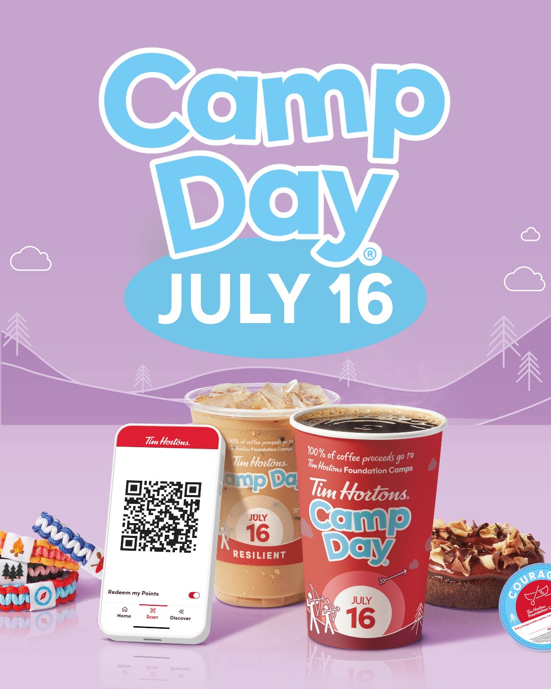 Tim Hortons Camp Day Today. 100% of proceeds from hot and iced coffee sales donated to Tim Hortons Foundation Camps!