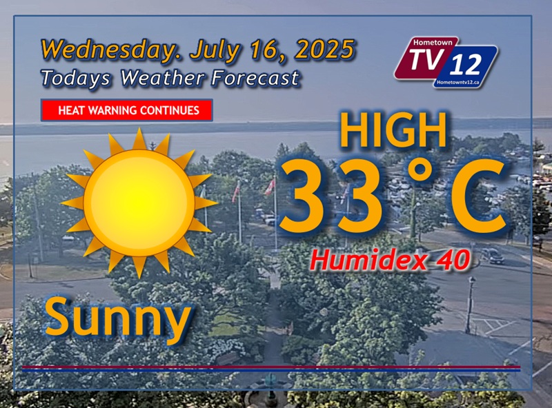 HEAT WARNING Continues for Brockville & Leeds-Grenville for Today! Brockville — Today is sunny. The...... Read more.