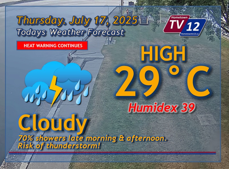 HEAT WARNING Continues for Brockville & Leeds-Grenville for Today! Brockville — Today is cloudy. 70...... Read more.