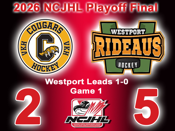 Vankleek Hill – The Westport Rideaus won game 1, 5-2 over the Vankleek Hill Cougars...... Read more.