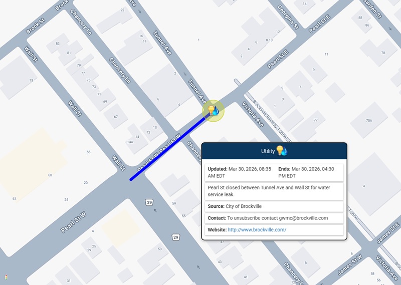 Brockville – Pearl St. West is currently closed between Wall Street and Tunnel Avenue due...... Read more.