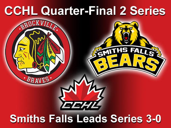 Brockville Lost 3-2 in OT to Smiths Falls in Game 1 of Their CCHL Quarter-Final 2 Playoff Series Friday