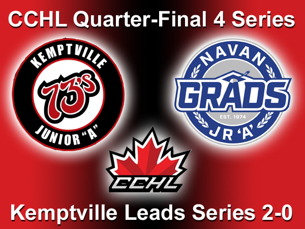 Kemptville – The Kemptville 73s now lead their CCHL Quarter-Final Series with the Navan Grads...... Read more.