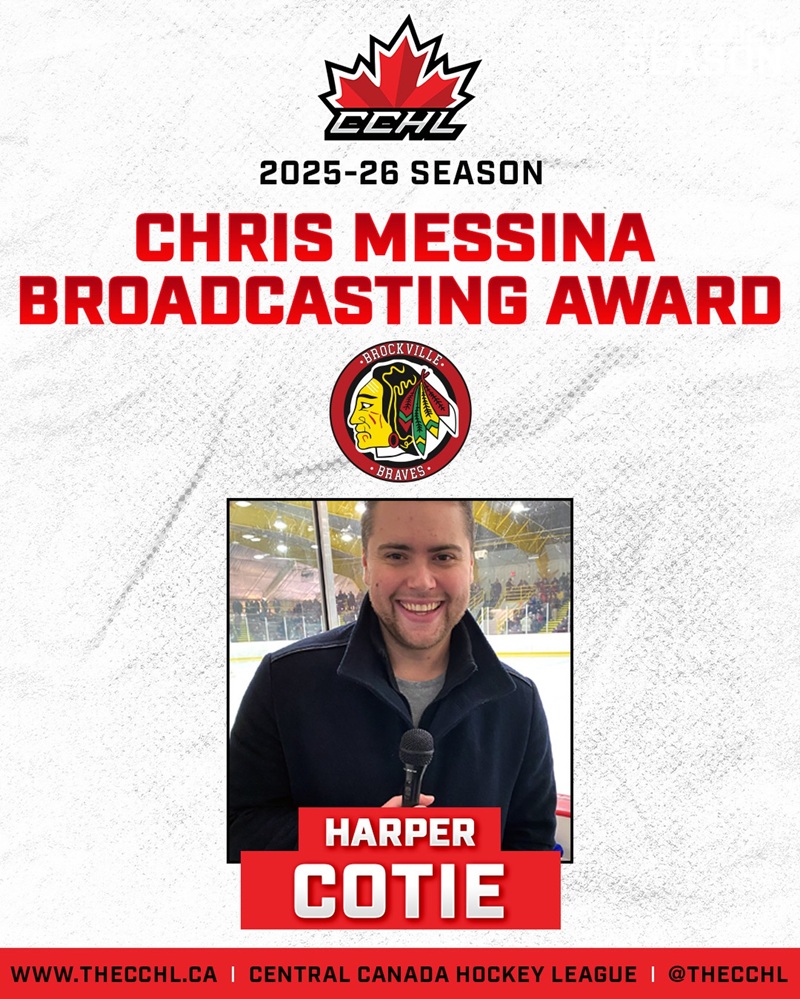 Brockville Braves Broadcaster Harper Cotie Named CCHL’s 2025-2026 Chris Messina Broadcasting Award Recipient