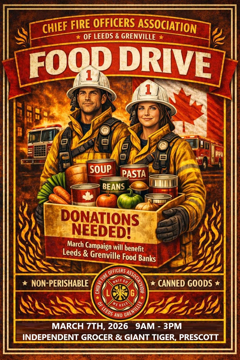 Chief Fire Officer’s Association of Leeds and Grenville & South Grenville’s Three Fire Departments Hosing Food Drive March 7th