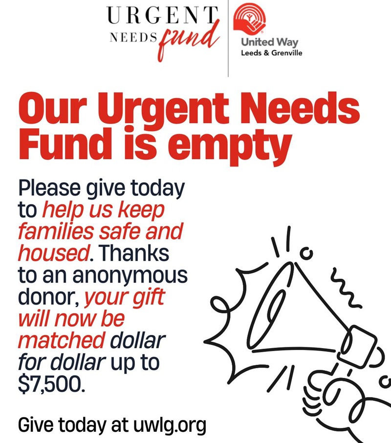 United Way of Leeds & Grenville Urgent Needs Fund Needs Your Help