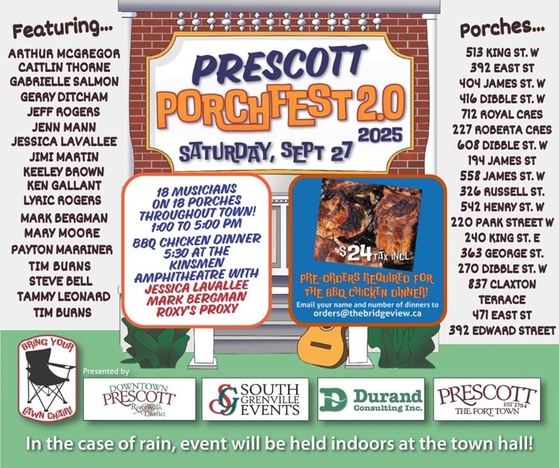 Prescott – Prescott’s day of music & community, Porchfest 2.0 presented by South Grenville Events...... Read more.