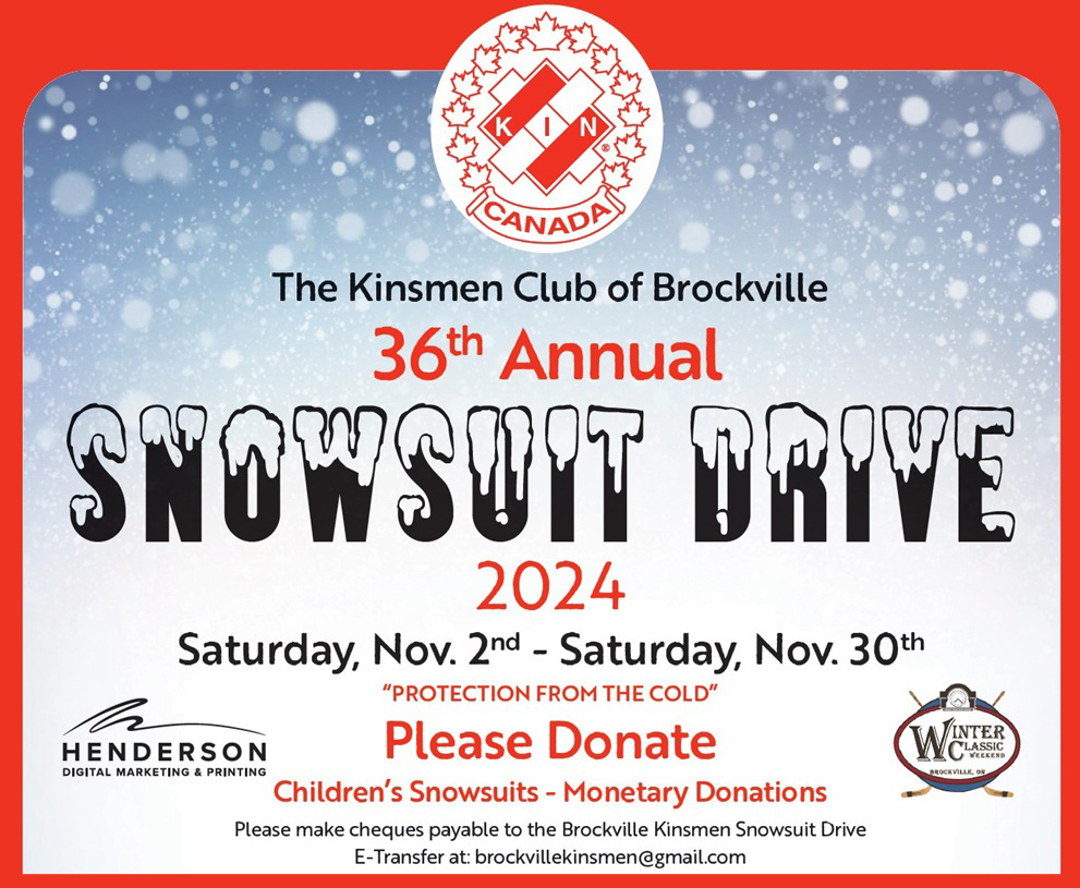 Kinsmen Club of Brockville’s 36th Annual Snowsuit Drive Runs From Nov. 2nd to 30th