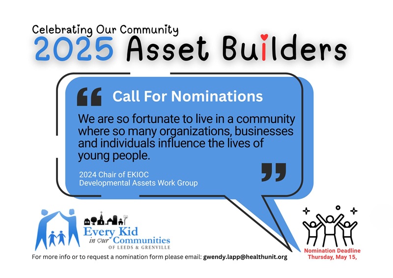 Every Kid in Our Communities of Leeds & Grenville and Lanark County Child & Youth Services Collaborative Calling for Nominations of Asset Builders