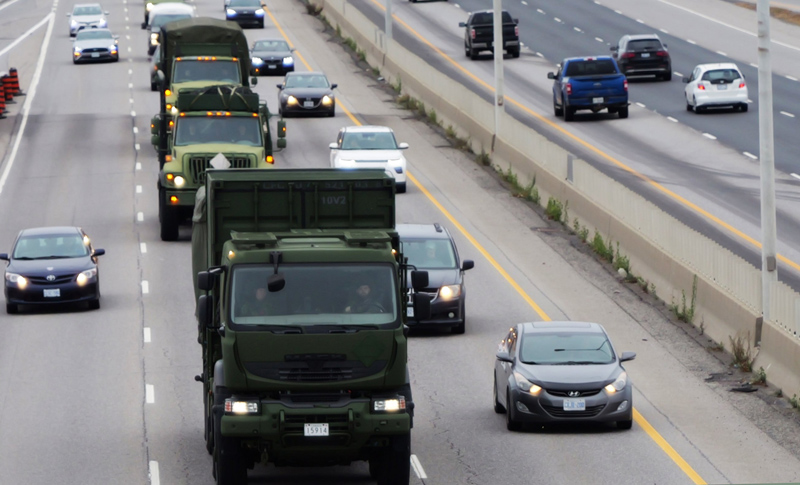 Canadian Army Reserve Conducting Transport and Supply Convoys on Ontario Highways Including 401 & 416 March 20 & 27 and 22 & 29